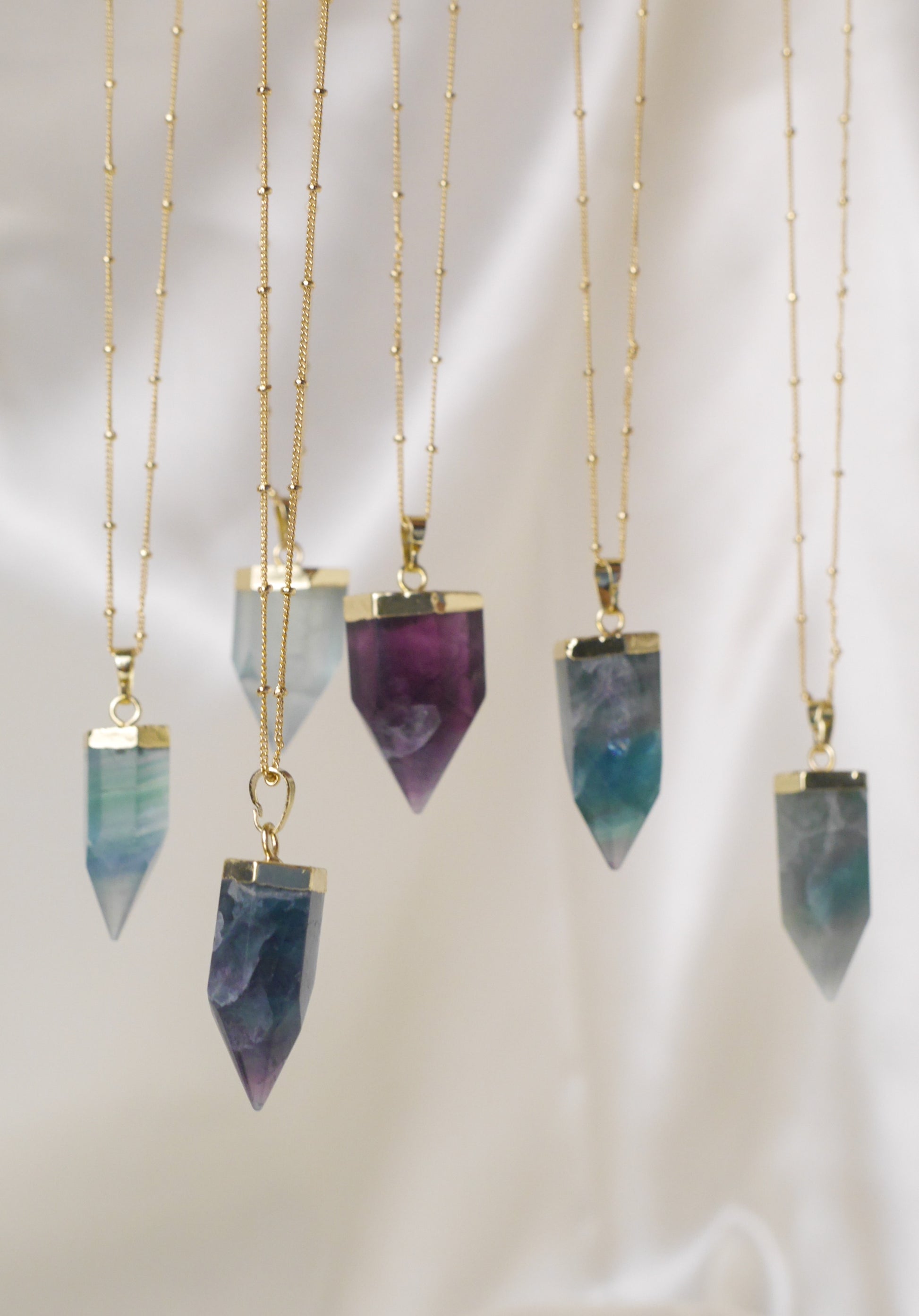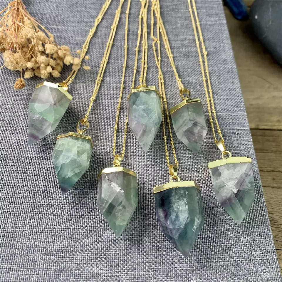 Beautiful Natural Fluorite Point 18K gold necklaces.